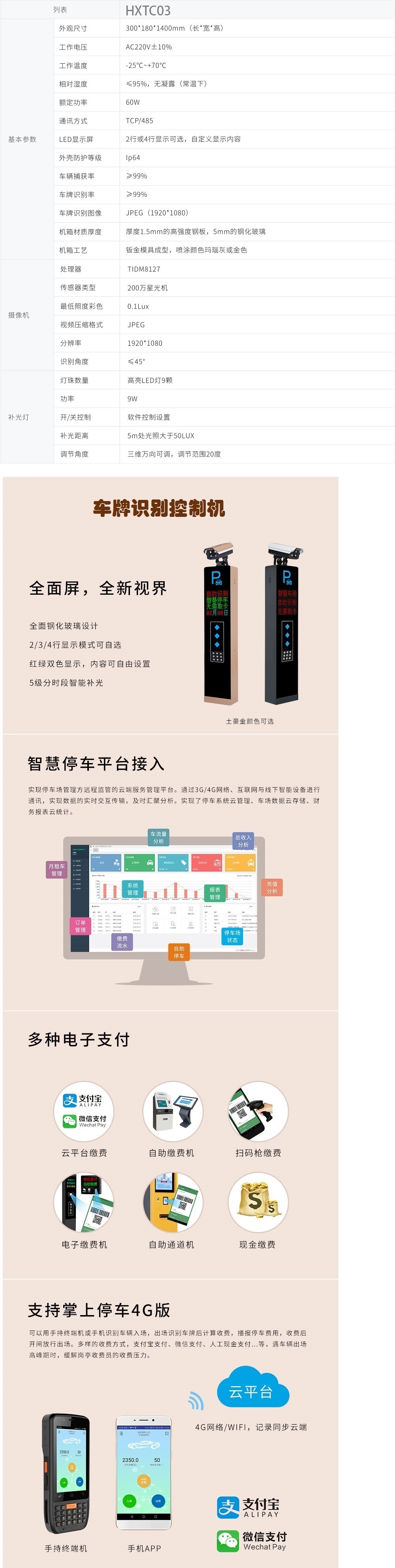 • 产品描述:智慧车牌识别,全面而来 全面屏设计 多种显示效果定制 智控补光灯 万能语音播报